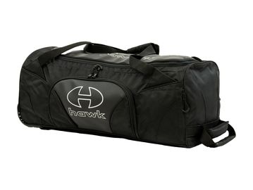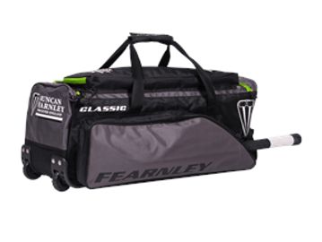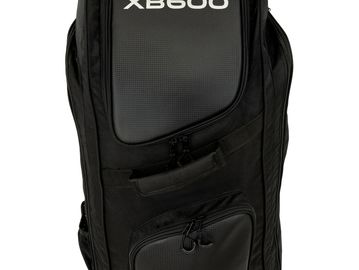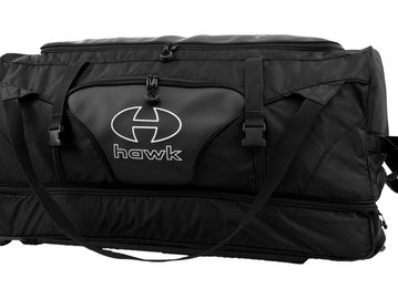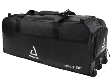 Large capacity wheeled holdall. 95 litre volume capacity. Black with silver trim.