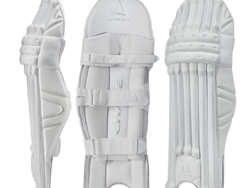Professional level Right hand or Left hand Batting pads in brilliant white.