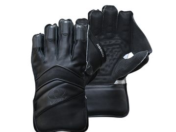 Top quality Wicket Keeping gloves in 2 Adult sizes. Black.