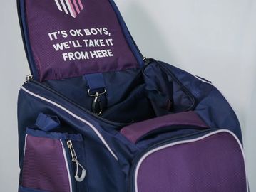 Great size duffle bag just for girls and ladies. Blue with purple, white and lilac trim. Inspirational quote as standard.